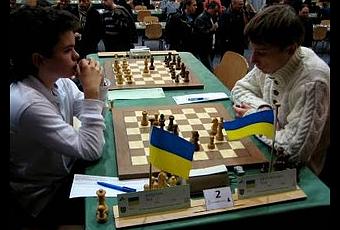 Ci-contre, les Ukrainiens Illya Nyzhnyk (2530) et Yuriy Kryvoruchko (2520) ont annulé hier en table 2 pour le compte de la ronde 7 © Photo Chess & Strategy.