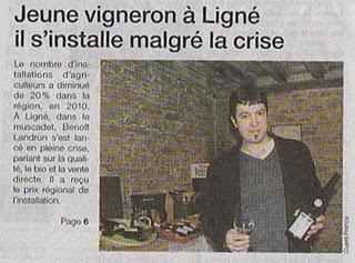Benoît Landron a reçu le premier prix régional d'installation agricole pour l'année 2010 !