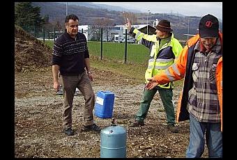 Cinq personnes du service technique, une ATSEM (Agent Territorial Spécialisé des Écoles Maternelle) et un adjoint technique ont assisté à une formation pour l'utilisation de trois extincteurs :