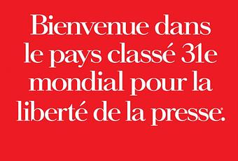L’association Reporters Sans Frontières publie chaque année un rapport classant tous les pays du monde en fonction de la liberté de la presse. On retrouve sans surprise des dictatures comme la Corée du Nord ou le Myanmar (Birmanie) tout en bas du classement. A l’inverse, les pays scandinaves figurent majoritaires en tête. Il semblerait invraisemblable que la France, pays des droits de l’homme, de la révolution et de la liberté d’expression, ne les suive de près. Pourtant, elle s’en éloigne progressivement : passée de la 31e place en 2007 à la 35e en 2008, et figurant aujourd’hui à la 43e (rapport 2009), elle a perdu douze places en à peine deux années. [Le rapport 2010 descend encore la France d'une place, la faisant passer à la 44e.] Une régression significative qui amène à se poser certaines questions sur la liberté de la presse dans notre démocratie et à interroger jusqu’à ses fondements. Le grand magazine britannique The economist ironisait déjà sur cette situation lors d’une campagne d’affichage un brin provocatrice :