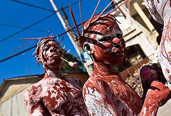 Dans la suite du Carnaval de Jacmel et de mon billet de dimanche (le lien), on m’a informé que le personnage sur la photo correspond aux Atibruno. La signification n’est pas encore très claire, mais je comprends que ces personnages seraient l’œuvre d’un artiste nommé Bruno (Atibruno). Selon une référence sur le web (le lien), j’y décèlerais un peu de cette autodérision haïtienne. On parle souvent de la fierté haïtienne (même de l’orgueil), mais le carnaval est aussi une bonne occasion de se tourner en bourrique.