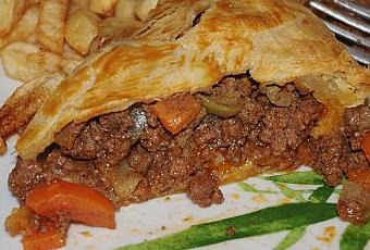 Etaler une pâte feuilletée dans un plat, verser dessus la préparation puis recouvrir avec la seconde pâte feuilletée.