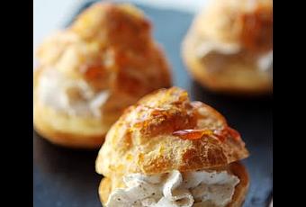 Une fois les choux refroidis, faire un caramel au sucre pour décorer les choux. Découper en 2, commencer par répartir un peu de crème pâtissière, de la crème chantilly et le couvercle. Et voilà une pure gourmandise !