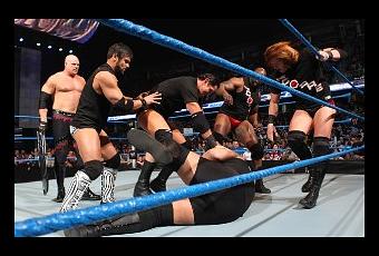 Dans sa folie destructrice Kane s’en prend à Justin Gabriel brisant l’alliance temporaire entre lui et les hommes de Barrett.