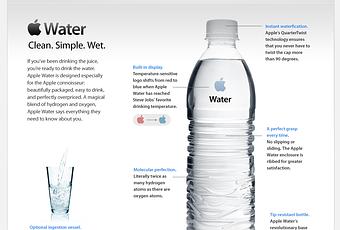 Apple réinvente l’eau, ceci est une révolution. Un magnifique fake du site scoopertino.com.