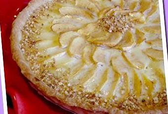 Voici une délicieuse recette de tarte aux pomme. Son originalité : une crème à base de lait concentré sucré !