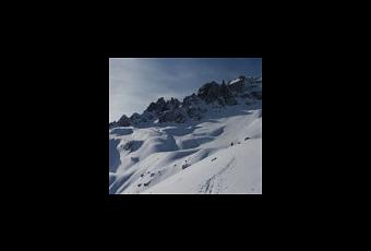 Nous sommes montés au Col de la Petite Part, pour ensuite se laisser tenter par le couloir en rive gauche qui était en top conditions, même si les premiers mètres n’étaient habillés que de quelques centimètres de poudre sur le caillou.