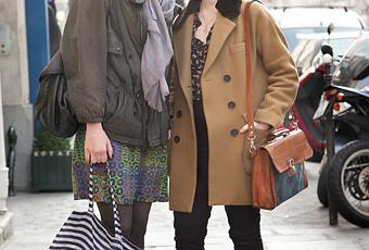 J'ai bien aimé le look de Sarah et Nina, chacun dans un genre différent: militaire bohème pour Sarah avec une veste récupérée dans le placard de sa mère et 70's pour Nina avec un manteau large camel et un très beau sac artisanal de la maison barcelonaise Iriarte Iriarte.