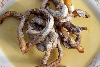 Chauffer l’huile à 180°C. Etaler une dernière fois la pâte et la couper en fins rubans. Les jeter dans l’huile chaude et remuer avec une écumoire. Les sortir dès qu’ils ont pris une coloration blonde (attention, c’est vite cuit). Egoutter sur du papier absorbant.