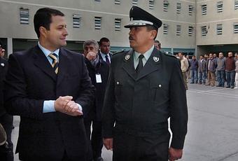 Luis Antonio Masferrer Farías, directeur national de la Gendarmeria (à gauche) lors d'une visite dans une prison surpeuplée du Chili (photo Gendarmeria de Chile)