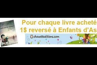 Juste un petit rappel, mon livre numérique "Le petit cireur de chaussures" illustré par Alice Dufeu parraine toujours un programme humanitaire d'ENFANTS D'ASIE pour aider des petites filles et leurs grandes soeurs des villages du Mékong à rester en milieu scolaire et en formation professionnelle. Trop souvent ces fillettes restent à l...a maison pour effectuer les tâches ménagères et s'occuper des plus jeunes tandis que leur aînées sont envoyées dans les grandes villes et se font agripper par des proxénètes qui les exploitent et les détrusient. Si vous souhaitez m'aider dans cette démarche humanitaire, vous pouvez télécharger mon livre sur le site www.chouetteditions.com au format Pdf ou ePub et 1$ du prix du livre est reversé à ENFANTS D'ASIE. Merci de votre soutien et votre générosité. Bien amicalement. Dominique.