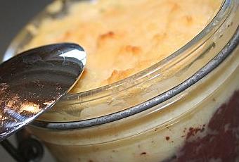 Mettre une couche de boudin dans les bocaux puis recouvrir de purée...