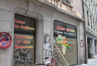 Ce matin à la rue des Etuves. Une arcade abandonnée anciennement salon de coiffure et commerce spécialisé dans la vente de produits africains est investie par un groupe de jeunes. Le but de cette opération est de faire de cet espace un lieu collectif autogéré. Le programme est alléchant: projection de films, repas, musiques, ateliers pour créer et apprendre la couture, la réparation de vélos, sérigraphie, mettre à disposition gratuitement des vêtements, des livres...