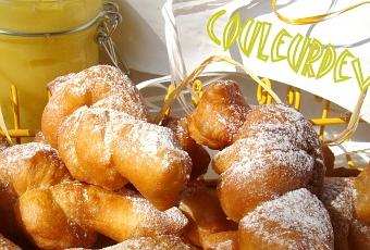 Je vous propose une petite pause pour déguster ces délicieuses ganses parfumées accompagnées de leur crème au citron si onctueuse….allez, on enlève les masques et on se régale !