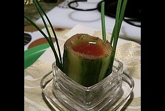 (les invités boivent le Bloody Ceasar et mangent ensuite le concombre).