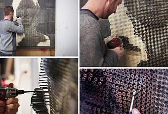 Andrew Myers est un artiste sculpteur en provenance de Californie qui a réalisé des oeuvres et des portraits en volume grâce à plus de 10 000 trous qui sont après visés un par un à la main. Il appel cela, à juste titre, du Screw Art (l'art de la vis). Cela donne une toute autre façon de découvrir un portrait, au delà d'une peinture conventionnelle. Moi qui adore fabriquer de mes mains, je suis fan.Je l'ai découvert via Fubiz™, site qui regorge de trucs graphiques : photographie, design, peinture, typographie, etc...