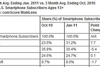 Selon les dernières données de ComScore aux Etats-Unis, Android vient de passer devant Blackberry et iOS dans la guerre de l’OS le plus populaire sur smartphone. Les victimes d’Android sont justement Blackberry mais aussi Windows Phone 7 et WebOS, iOS arrivant à se maintenir.