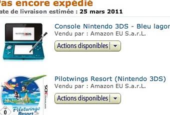 Ca y est ! La Nintendo 3DS est commandée chez mon partenaire Amazon.fr, pour le prix de 219€, le plus bas actuellement ! Car Amazon s’aligne de jour en jour pour garantir le prix le moins cher le jour de la sortie de la console. Bon à savoir !