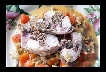 Ce petit rôti farci est confectionné par mon excellent boucher de quartier, rue Bréa. Mais je procèderais exactement de la même façon pour des morceaux de lapin et en particulier des dos ou un râble.