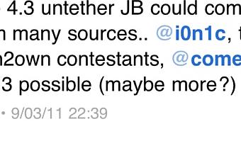 MuscleNerd communique beaucoup ce soir ! Chose normal à chaque sortie d’un nouvel iOS ! Il nous apporte un peu d’espoir ce soir ! Il nous informe que le jailbreak du dernier firmware pourrait arriver via plusieurs sources/hackeurs tant ils sont nombreux à travailler dessus !