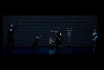 Le geste est lent, suspendu, geste de peintre, posant sur la toile la forme, le mouvement. Peintre du mouvement, Paco Dècina dispose les corps comme des éléments visuels : il ne raconte pas une histoire, son histoire ce sont les élévations, les fluidités, les traits de lumière qui ouvrent l’espace, qui font littéralement danser l’espace. Quelque chose travaille à l’intérieur du regard du spectateur, ça va creuser loin, profondément, lentement. Chaque mouvement est lié à un autre, un bras à un autre, un pied prend appui sur une épaule, une main sur une omoplate, au point qu’on en oublie les corps et qu’on n’en voit que la lumière. La danse proposée par Paco Dècina est picturale et onirique. Elle nous transporte en deçà de nos paupières, utilisant les techniques de vidéo qui semblent déformer les images quand elles ne font que les révéler. (photo Laurent Schneegans)