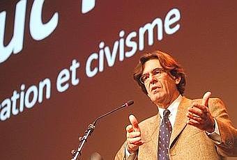 © Odile Meylan | Luc Ferry donne souvent des conférences. Le voici en tribun à Lausanne en janvier 2009