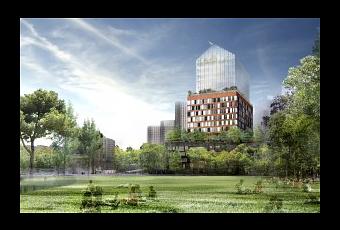 Immeuble de bureaux en cours de construction, développant une surface de 38 600 m², conçu par le cabinet d'architectes Ateliers Jean Nouvel. Selon le promoteur, c'est un ensemble architectural qui étonne, attire le regard et fait parler de lui : la "non tour".