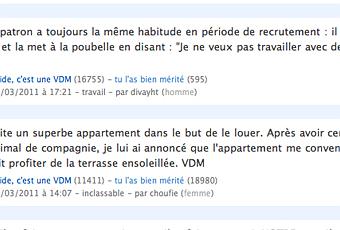 À l’origine du concept, Guillaume, Julien et Maxime, trois potes fans de jeux vidéos. Lors d’une session de gaming, l’un d’entre eux écrit à ses amis sur le chat : « Aujourd’hui, mon frigo s’est décongelé tout seul. VDM ». Pas très drôle, certes, mais c’est là le début d’une véritable success story. Le nom de domaine viedemerde.fr est déposé en septembre 2008. Quelques jours plus tard, des milliers d’internautes se connectent pour poster leurs mésaventures du quotidien. Les VDM parlent de travail, d’argent, d’amour et de sexe : « Aujourd’hui, mon chéri m’appelle en quittant le boulot. Je lui fais remarquer que je suis en tenue sexy et il me dit qu’il s’empresse de rentrer. Il s’est également dépêché d’ajouter : « Non, mais ce n’est pas pour toi que je rentre, j’ai entendu le générique des Simpson derrière toi. » VDM ».