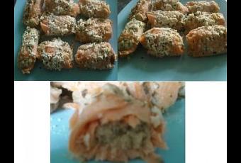 mixer les fruits de mer avec les carrés frais ail et fines herbes. disposer 1 cs de cette préparation sur les tranches de truite fumée et les rouler comme une paupiette. dans un bol mélanger les carrés frais nature avec un peu de lait, la moutarde et les épices.dans un plat à gratin recouvert de papier aluminium disposer les paupiettes. verser la sauce et fermer la feuille d’aluminium en papillote.mettre au four à 200° pdt 20 à 25 mn.