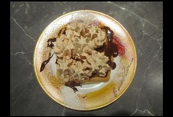 Ensuite, faites cuire vos gaufres. Napper de sauce au chocolat et mettre un peu de chantilly goût Mars (un peu .. ou beaucoup !)