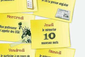 - le design de l'emailing est intéressant : chaque activité proposée est détaillée sur une espèce de Posts-it, qui se superposent et s'enchaînent chaque jour de la semaine, donnanr la sensation d'une grande diversité dans les activités d'apprentissage