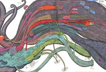 Réalisée par un certain Ward Shelley (de la Parsons the Newschool for Design), voici une illustration retraçant d’une manière franchement originale l’histoire du genre de la science fiction, d’Alice au Pays des Merveilles à La Guerre des Mondes, en passant par Star Wars.