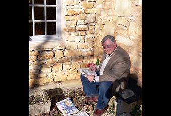 Après six heures et demie de conduite, Claude s'assied au soleil pour faire ses mots croisés. Il l'a bien mérité.