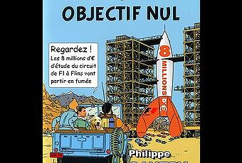 Pou la première affiche (voir "Gautry : le candidat bodybuildé..."), on se demandait à qui de ses six adversaires était destiné le gros suppositoire que M. Gautry, en maillot de bain, tenait. Dans cette seconde affiche, le candidat vise le Conseil général des Yvelines - et indirectement le conseiller sortant, M. Ribault - pour se moquer de l’une des plus rocambolesques affaires du dernier mandat : le projet avorté de Circuit de Formule 1.