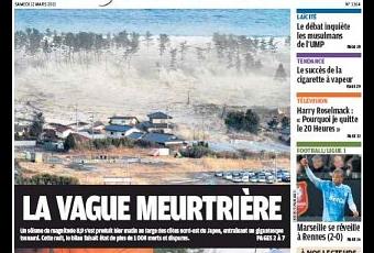 Le flot d’images spectaculaires qui a rempli les écrans vendredi, après le tsunami qui a frappé le Japon offrait un large choix, mais dans la presse internationale, étrangement, cette diversité potentielle laisse place à deux images qui s’imposent : celle d’une zone inondée avec des maisons en feu, et celle de la vague qui passe un rideau d’arbres pour déferler sur les maisons. Quelques exemples.