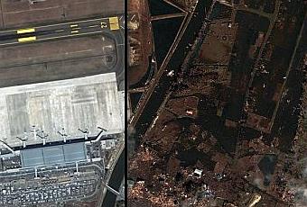 Des photos aériennes prises sur le Japon ont révélé l'ampleur de la dévastation à travers des dizaines de banlieue et des dizaines de milliers de foyers et d'entreprises qui ont touché les Japonais.