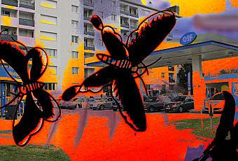 il est vrai que j'ai toujours un regard attentif pour les "gazoline station" depuis leur découverte il y a bien des années dans l'oeuvre mythique et emblématique d'Edward Rusha... J'aime aussi les projeter dans un univers impossible, falsifier leur si improbable beauté. En tous lieux et tous genres elles me fascinent. De celle d'il y a quelques mois bordant du côté de Kafrine la Route Nationale 1 du Sénégal à celle attrapée ce matinnon loin à Sucy en Brie. Elles me fascinent brutes ou façonnées. Elles sont l'expression d'une beauté industrielle qui fait chavirer les sens. Elles sont aussi le cadre de ce que je nomme des "nons lieux".