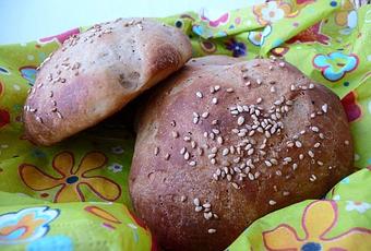Sortir votre plaque puis préchauffer votre four à 200°C, saupoudrer vos pains de graines de sésames et enfourner pendant 15 à 20min en surveillant bien.