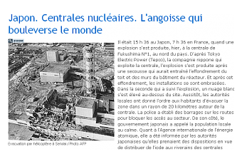 Une légende accompagne l’image, qui n’a visiblement rien à voir avec celle-ci : « Evacuation par hélicoptère à Sendai./ Photo AFP ».