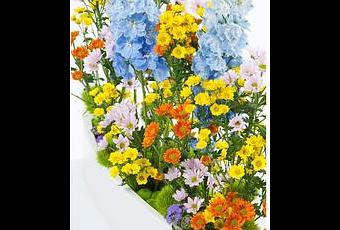 Un mélange typique de fleurs qui feraient le bonheur des abeilles. Le choix des chrysanthèmes de couleurs, formes et hauteurs différentes forme ici un mur floral qui produit un effet certain pour une surface relativement réduite. Voilà une création de l’ingénieur floral néerlandais Andreas Verheijen qui s’est fait la réputation de réussir à réaliser de véritables sculptures de fleurs. Il aime travailler les chrysanthèmes, parce que ceux-ci ont parfois des formes et des couleurs surnaturelles alors qu’ils sont absolument vrais.