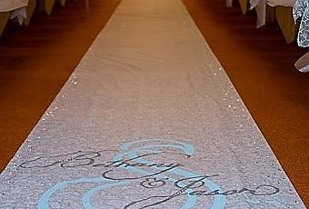Le tapis d’église personnalisé: original, décoratif, tendance: le tapis pour l’église procure une sensation d’événement chic et raffiné! Voici un modele de tapis d’église personnalisé, qui porte simplement les prénoms des mariés. pour un effet whaouh!