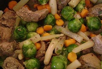 4) Ajouter les salsifis, les choux de bruxelles surgelés. Rectifier l'assaisonnement et poursuivre la cuisson 15 minutes sur feu plus vif
