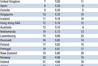 C’est probablement l’une des grandes surprises de l’étude : pour le critère de la Santé et de l’hygiène dans l’industrie du tourisme, la Suisse est en 13ème position sur 139, alors que la France elle est en 5ème position. Pour ma part, je suis toujours particulièrement étonné du niveau de propreté des hôtels et restaurants en Suisse : les professionnels français se sont donc visiblement améliorés sur cet aspect.