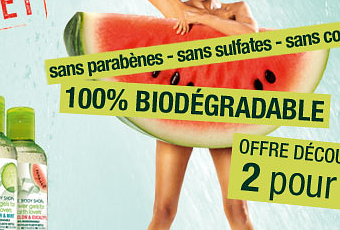 Ce gel douche éco-responsable est 100% biodégradable et il est formulé sans savon, sulfates, parabènes, ni colorants. Les parfums proposés sont assez originaux - Citron & Thym, Figue & Romarin, Abricot & Basilic, Poire et Citronnelle, Concombre & Menthe, Pastèque & Eucalyptus et Sans Parfum - et pour ma part, je me verrai bien sous la douche en compagnie du Figue & romarin.
