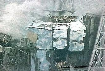 Voici la photo du réacteur numéro 4 qui vient d'être présentée à la télévision japonaise, mercredi 16 vers à 11h05 du matin (heure locale) il y a quelques minutes ! Il s'agit d'une photo qui aurait été prise hier, le mardi 15 mars. Mais, elle vient d'être diffusée. Au centre le réacteur numéro 4 et à côté complètement endommagé le réacteur numéro 3 ou ce qu'il en reste !