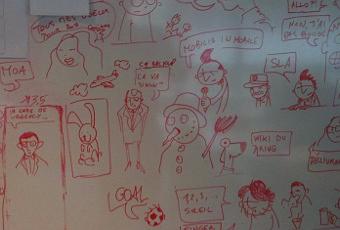 Depuis, il est bien rempli, et ce qu’il y a de drôle, c’est que plus personne n’ose s’en servir. Je suis donc le seul à effacer des dessins pour en faire de nouveaux.