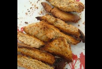 Trancher ensuite en mouillettes selon l’épaisseur voulue, remettre au four et retourné les de temps en temps pour griller sur toutes les faces