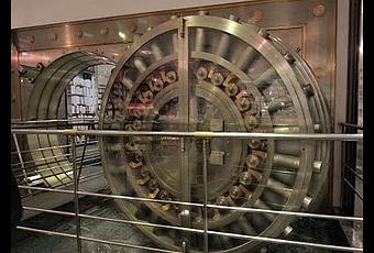 Coffre fort (source wikimedia)Donc cette utilisation des dépôts par les banques, pour cautionner des investissements sans avoir la propriété du crédit utilisé, s'effectue de façon non seulement de façon frauduleuse vis à vis du droit à la propriété, mais contre le citoyen déposant, alimentant ainsi des "valeurs" choisies arbitrairement et unilatéralement par un centre illégitime et spoliateur de l'ensemble de l'économie.