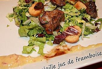 Lorsque j'ai reçu le jus cuisiné framboise basilic et citron vert, j'ai tout de suite pensé à cette recette, c'est ma grand-mère qui nous fait très souvent cette salade et elle déglace sa poêle avec du vinaigre de framboise...une merveille !!!