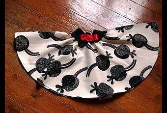 Maman en avait une forcement il en fallait une pour louloute...Un cercle de tissu, un élastique bien tendu pour ceinture et c'est tout (enfin presque... un ourlet )